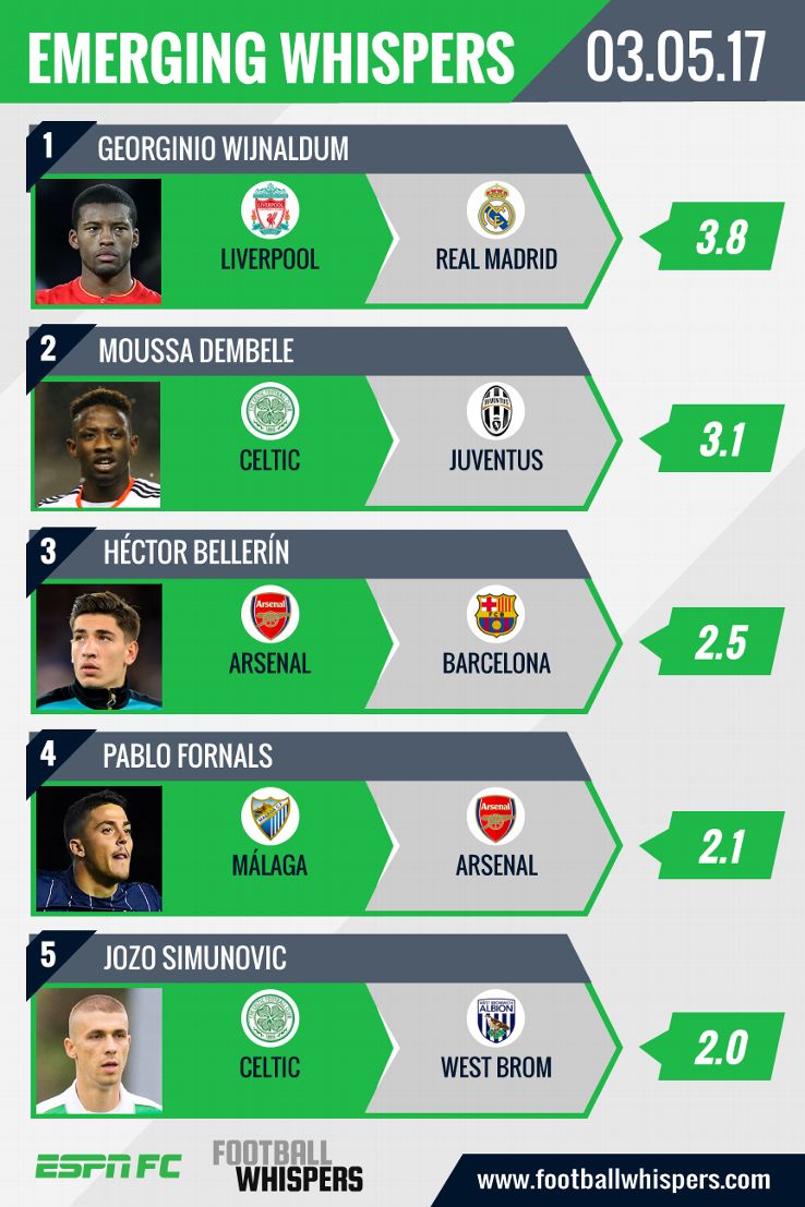Here are today's top five emerging whispers for the summer. And keep an eye on Transfer Talk for all the latest gossip.